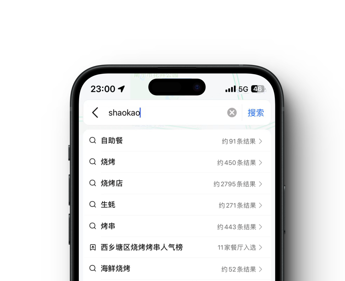 地图应用里的搜索框发展至今,已经不仅只支持对地点的搜索,能够从中搜索到以任何以地理位置为锚点的线下地点与服务,可以看作对输入内容的宽容处理与建议。