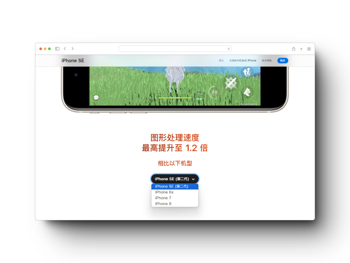 以 iPhone SE 这款机型为例,在“超强性能”这些描述以及色彩对比出色的样图面前,即便你知道设备性能实际不过尔尔,但总会有那么一会儿觉得它是更好的选择。